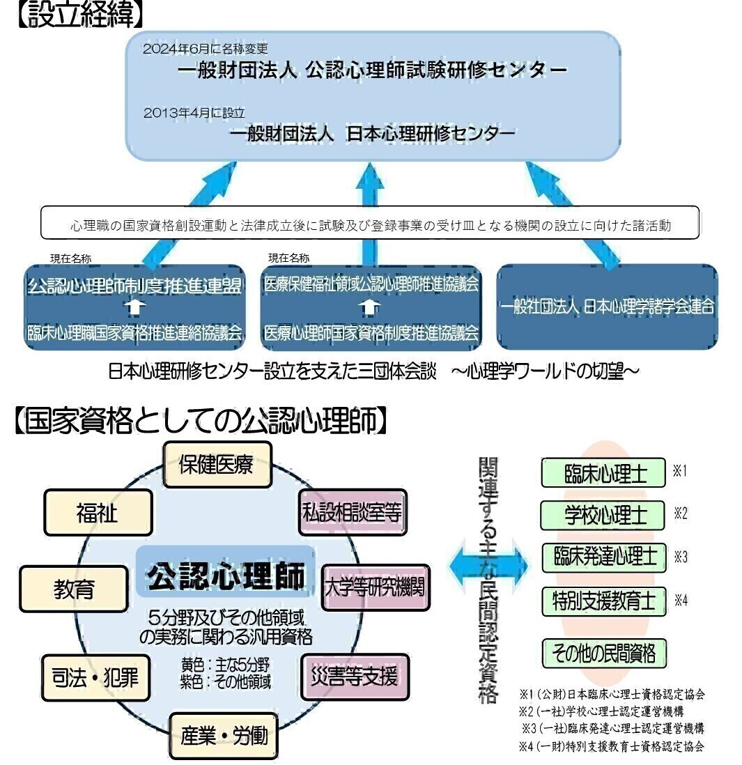 | 2024(令和6)年6月 | 「一般財団法人公認心理師試験研修センター」に法人名称変更 |