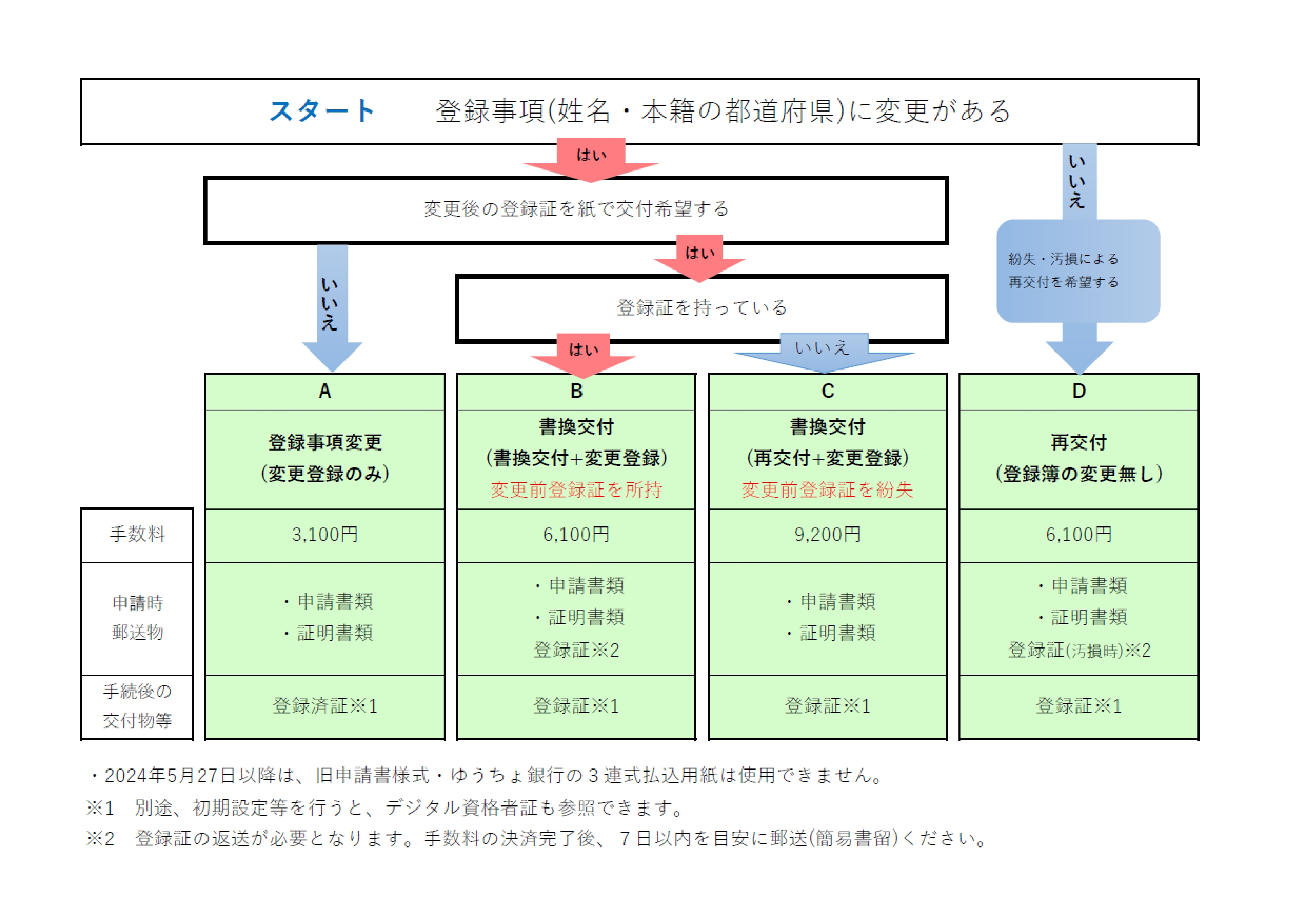 必要な手続と手数料を確認後、下記の該当PDFを印刷してください。不明点は、手数料振込前にお問合せください。